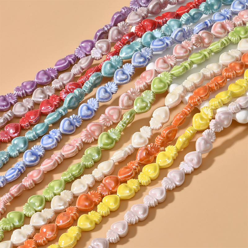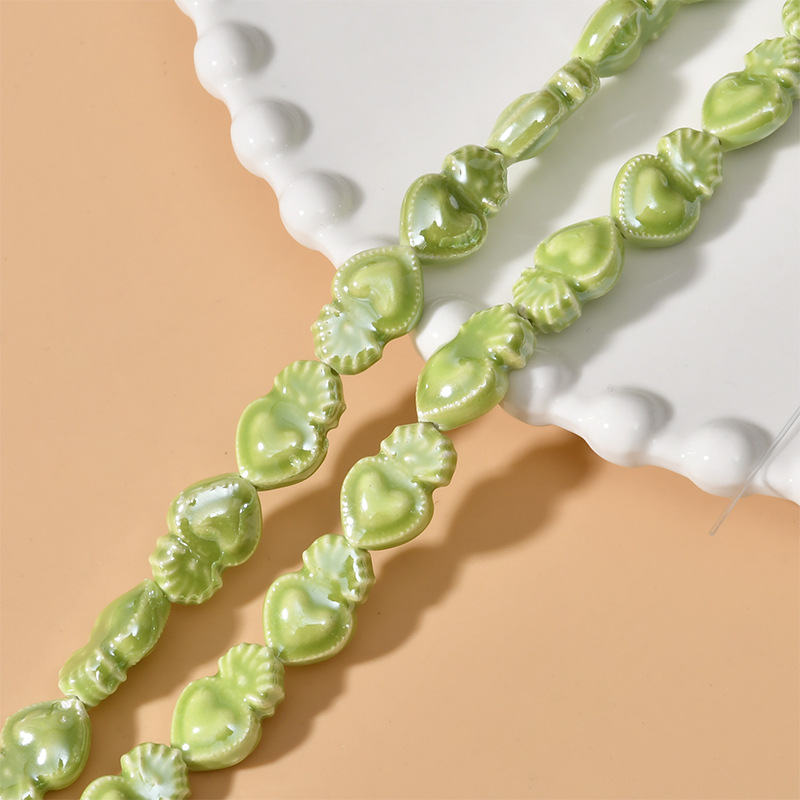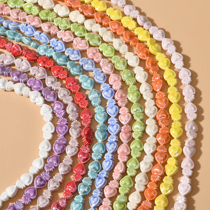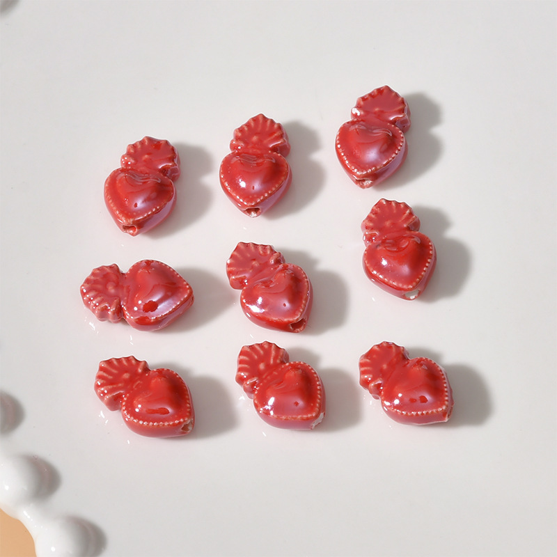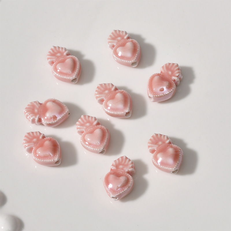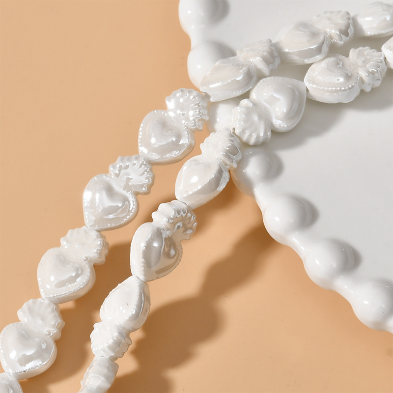 Cream Color Love Heart Small Torch Straight Hole Ceramic Beads