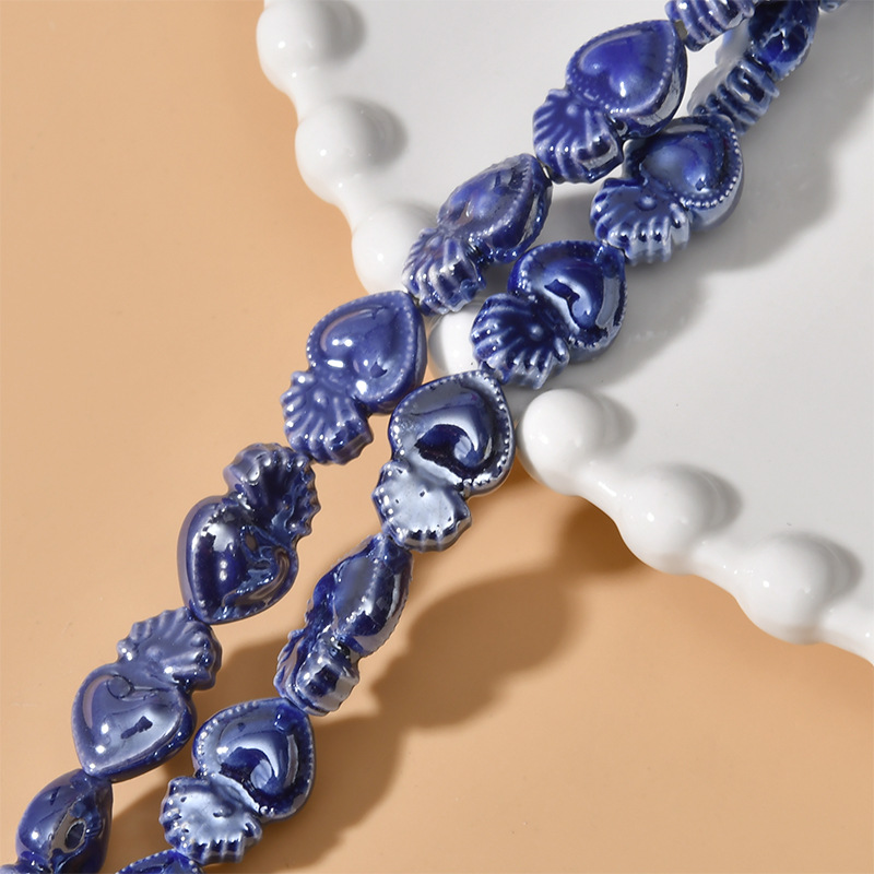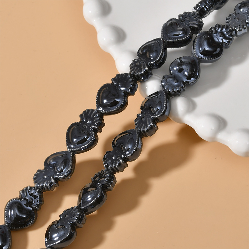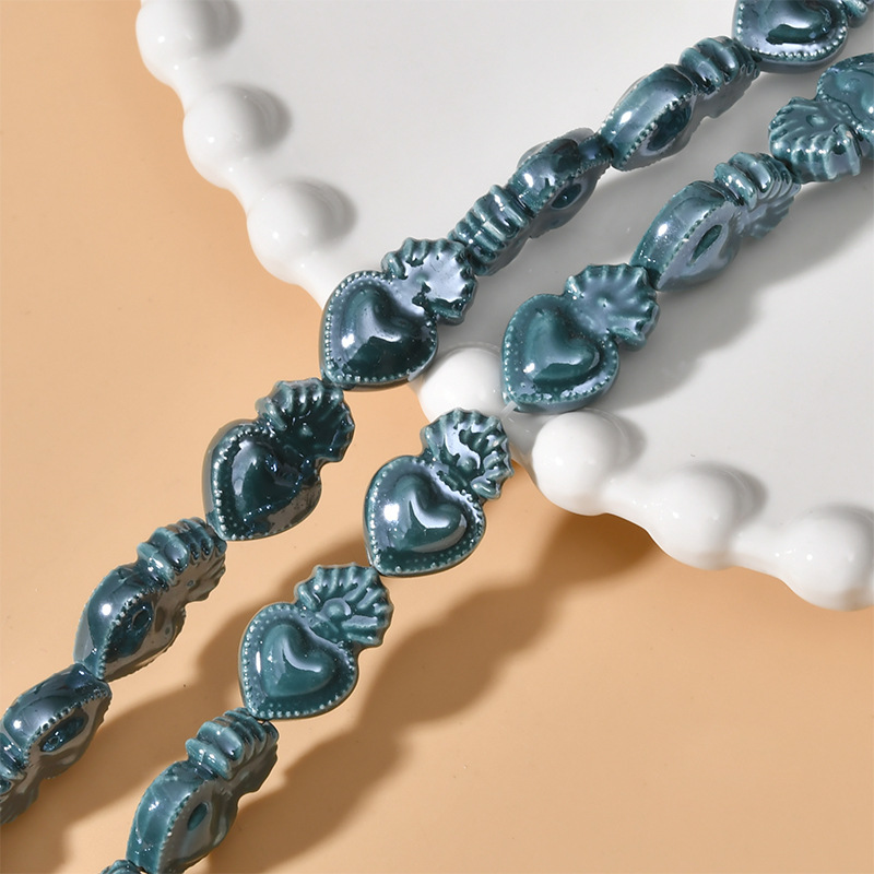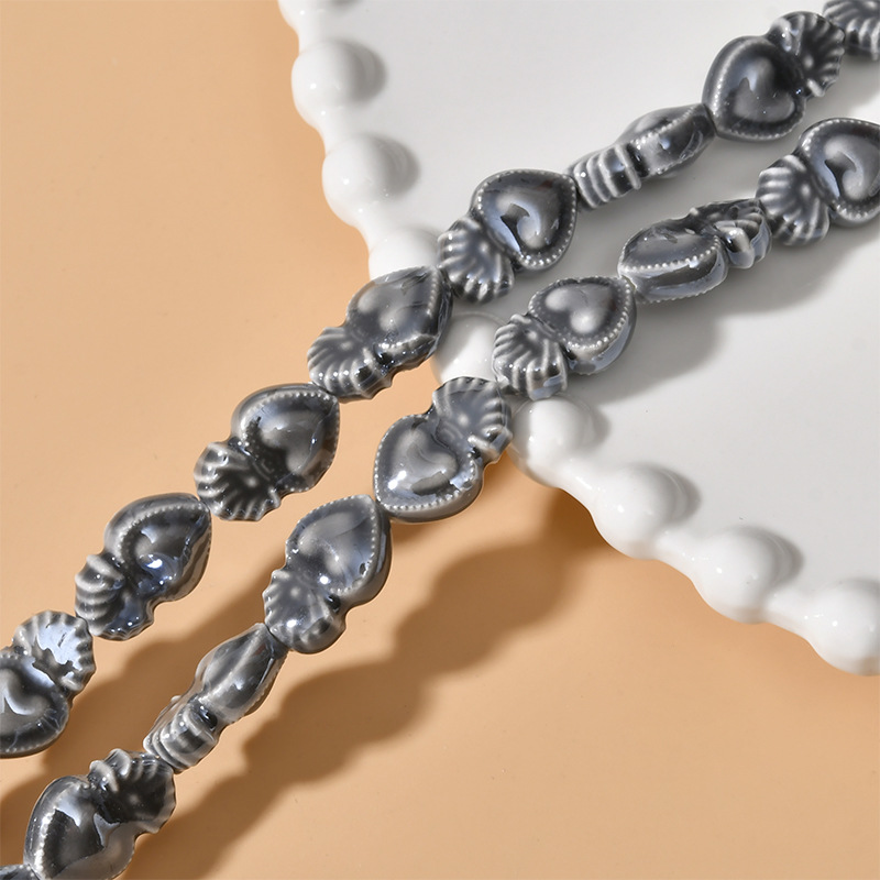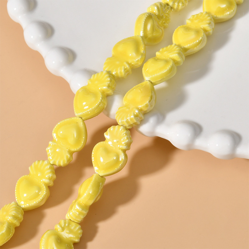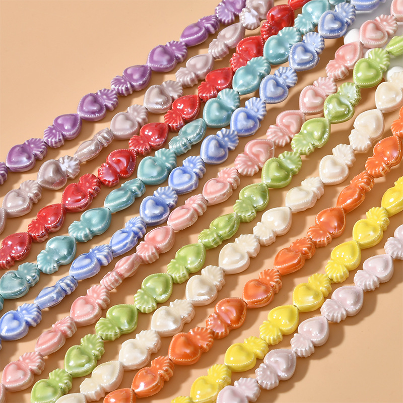 Cream Color Love Heart Small Torch Straight Hole Ceramic Beads
